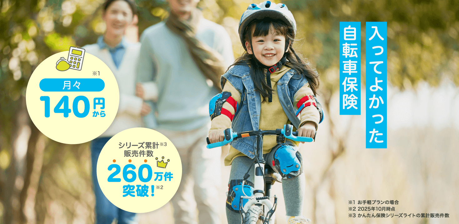 自転車事故等のケガや熱中症、賠償に関するリスクを補償する保険。